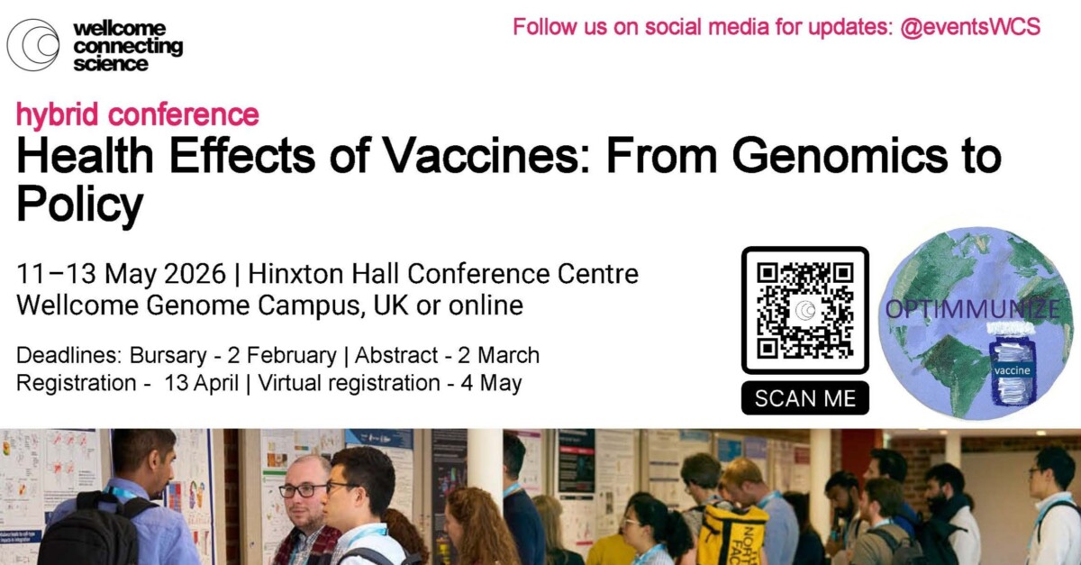 Health Effects of Vaccines: From Genomics to Policy is an international conference taking place 11–13 May 2026 at Hinxton Hall Conference Centre on the Wellcome Genome Campus.